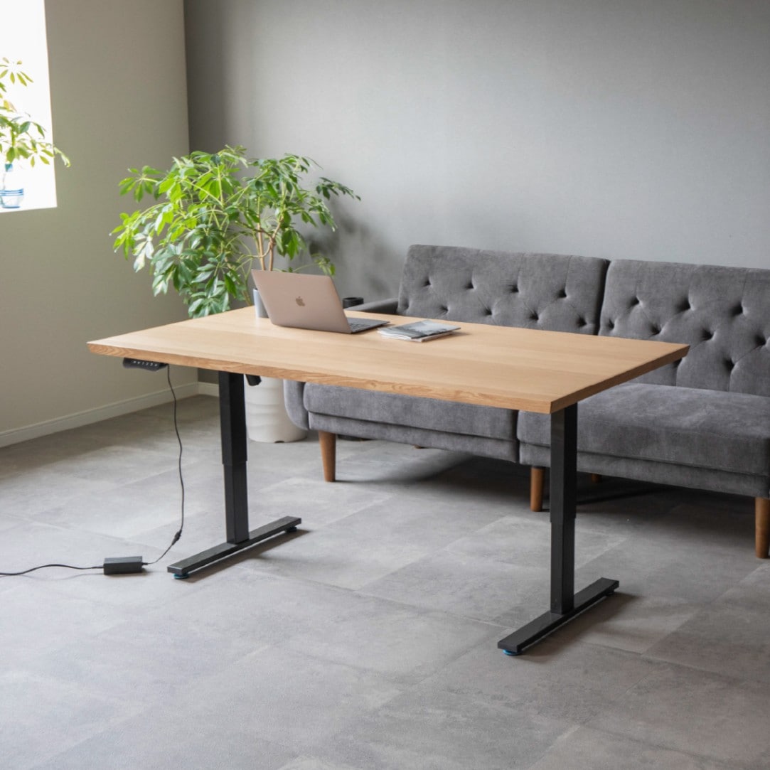 [幅155] 電動昇降テーブル 木製 高さ調節 自動 メモリー機能付き ダイニングテーブル 昇降式 オーク 木目 アイアン脚 スチ...