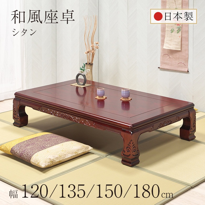 和風座卓 座卓 彫刻入り ローテーブル 2サイズ 幅120/150cm シタン 木製 国産 日本製 和室 ちゃぶ台 座敷机 大き...