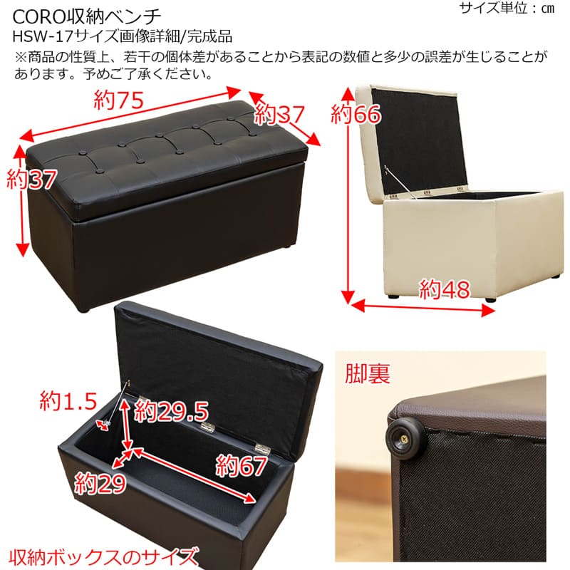 CORO 収納ベンチ HSW-17-BK ブラック