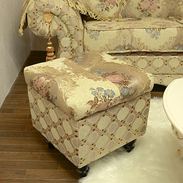 ローズロココ ファブリックボックススツールA0101:四角:ゴールド(送料無料)