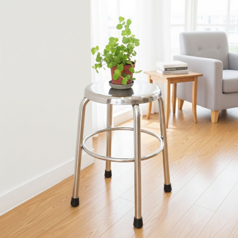 ステンレス製 ラウンドスツール 高さ47cm 直径28.5cm 耐荷重180kg|丸椅子・屋内外使用・玄関・リビング・インダストリ...