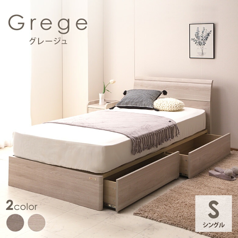 シングルベッド 引き出し付き グレージュ ライトグレー 引き出し収納付き フルオープンスライドレール付き 【引き出しは左右どちらに...