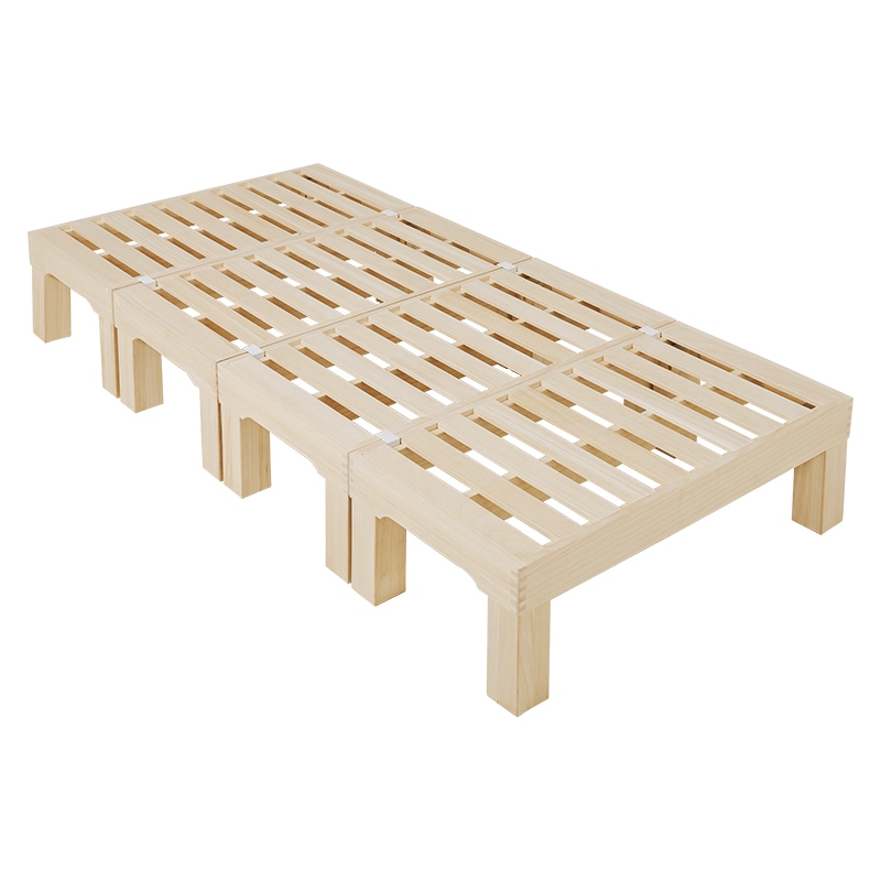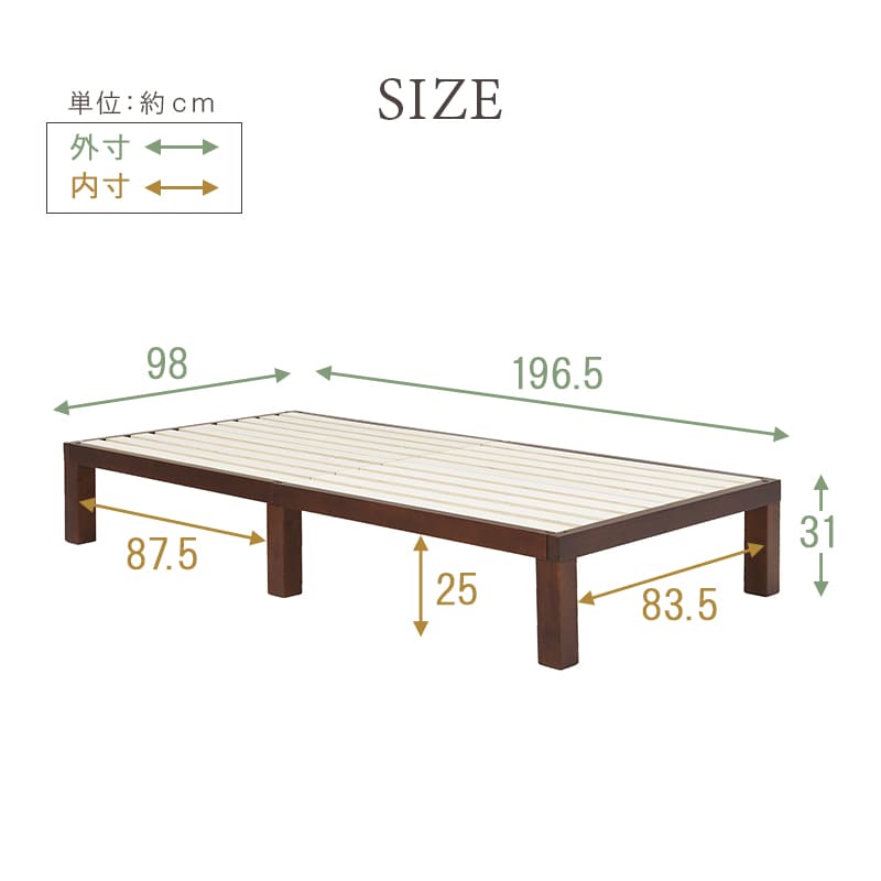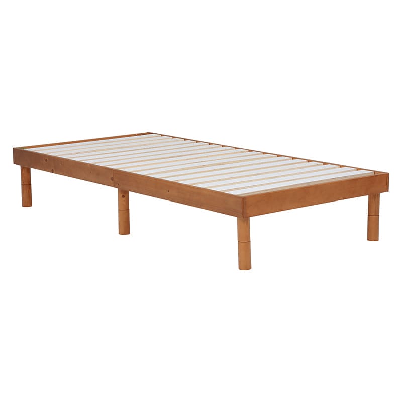 ベッド ショート丈 セミシングル ポケットコイルマットレス付き ブラウン 高さ調整 棚付 コンセント すのこ 木製送料無料