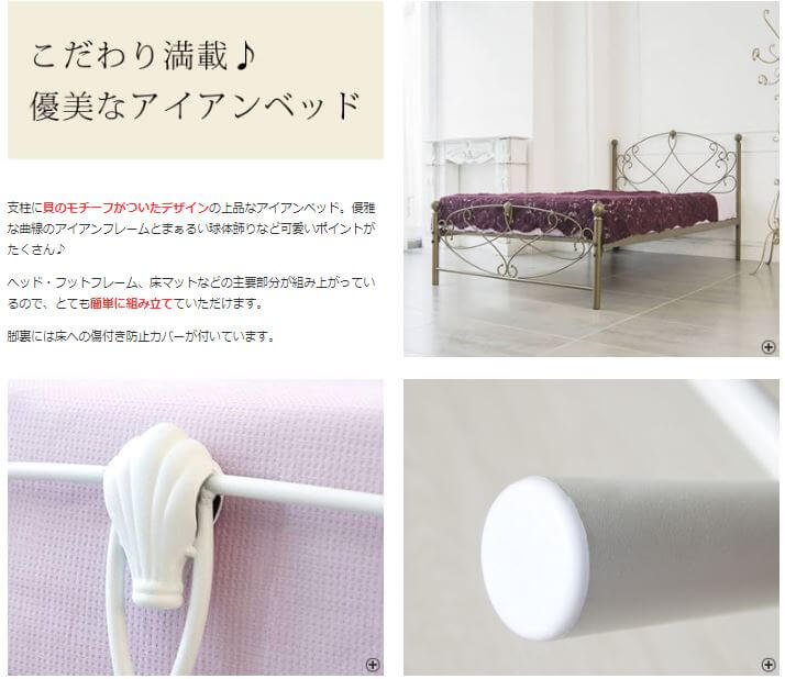 アイアンベッド Brigitte(セミダブル)ホワイト BSK-905SDS_WH