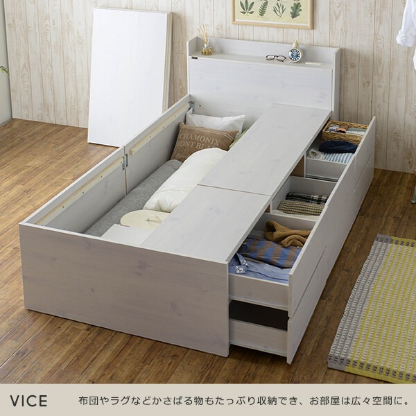 棚・収納付きヴィンテージチェストベッド セミダブル【BROOK】 BRSTL-SD-WOK ホワイトオーク