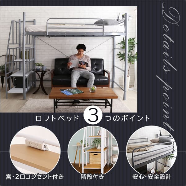 階段付き ロフトベット 【KRATON-クラートン-】HT70-95R-SL シルバー