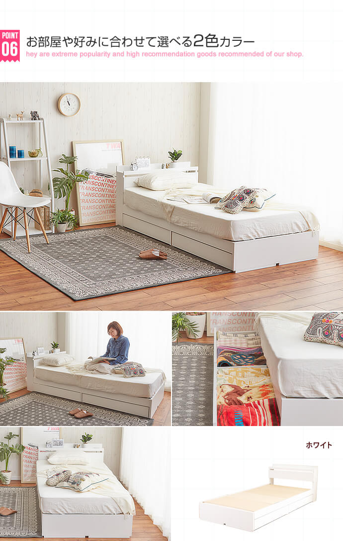 棚・コンセント付きチェストベッド Sサイズ 【Pukia -プキア-】 STL-S-WOK ホワイトオーク