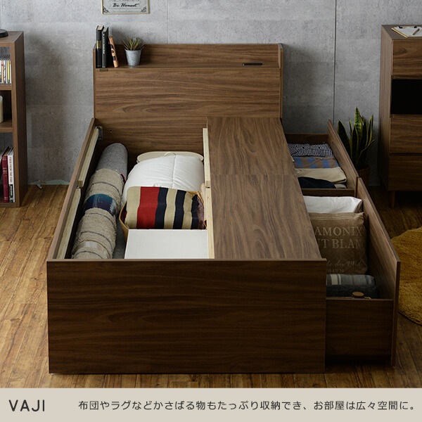VAJI(ヴァジー) 収納付きベッド(収納2分割/ハイタイプ)ブラウン VAJI100S-BR