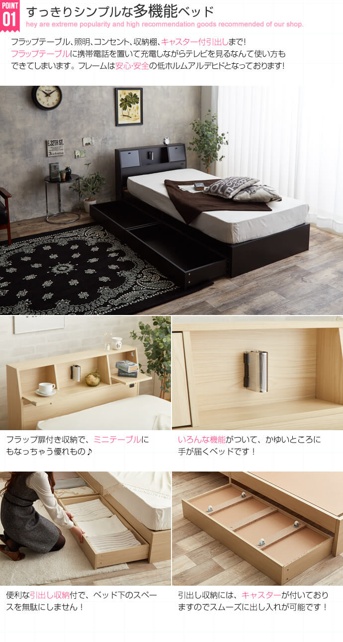 棚・コンセント付きチェストベッド Dサイズ【Reiz-レイズ-】 STL-D-WAL-TU 通常販売分