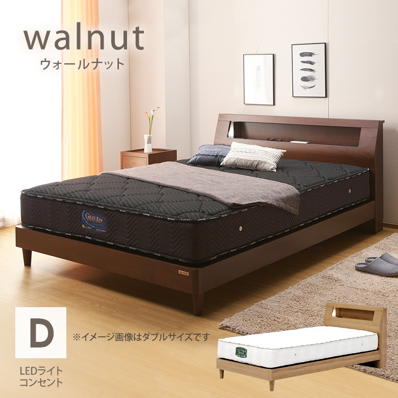 ウォールナット ダブルベッド ウォルテ ブラウン 棚付き【携帯電話などの充電に便利なコンセント付き】 【引出し無し】