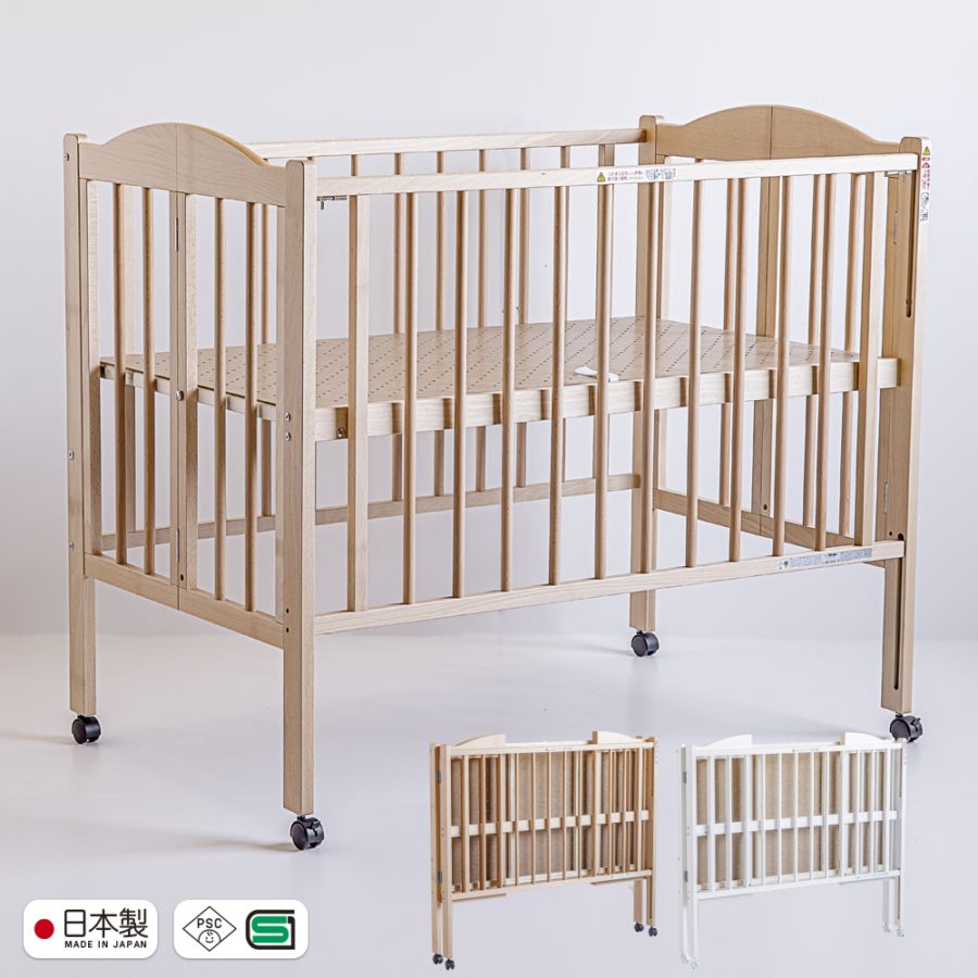 日本製 ベビーベッド「NEWプロヴァンス(WH)ホワイト【+寝具セット】」 キャスター付き ハイタイプ 木製 国産 高さ調整 ベ...