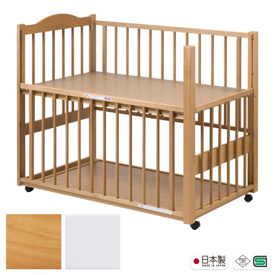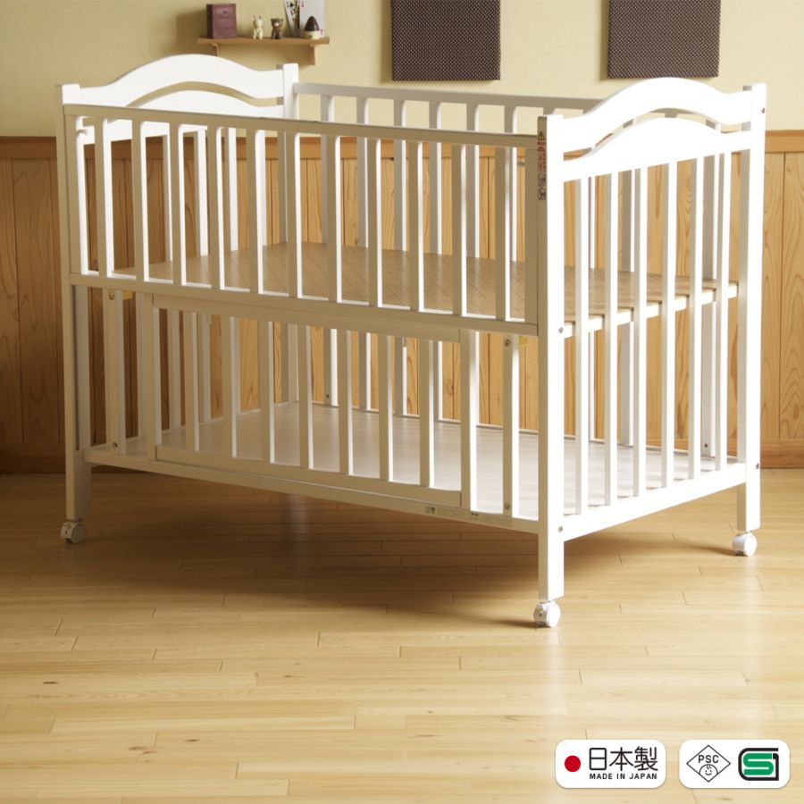 日本製 ベビーベッド「NEWプロヴァンス(WH)ホワイト【ベビーベッド単品】」 キャスター付き ハイタイプ 木製 国産 高さ調整...