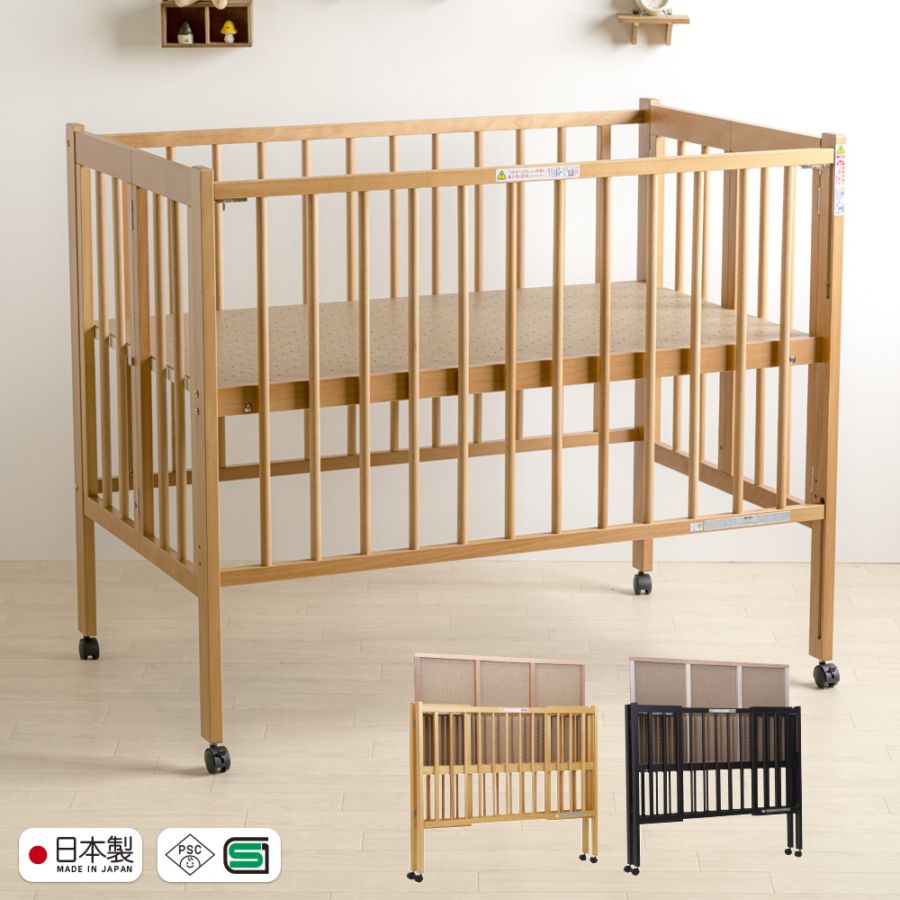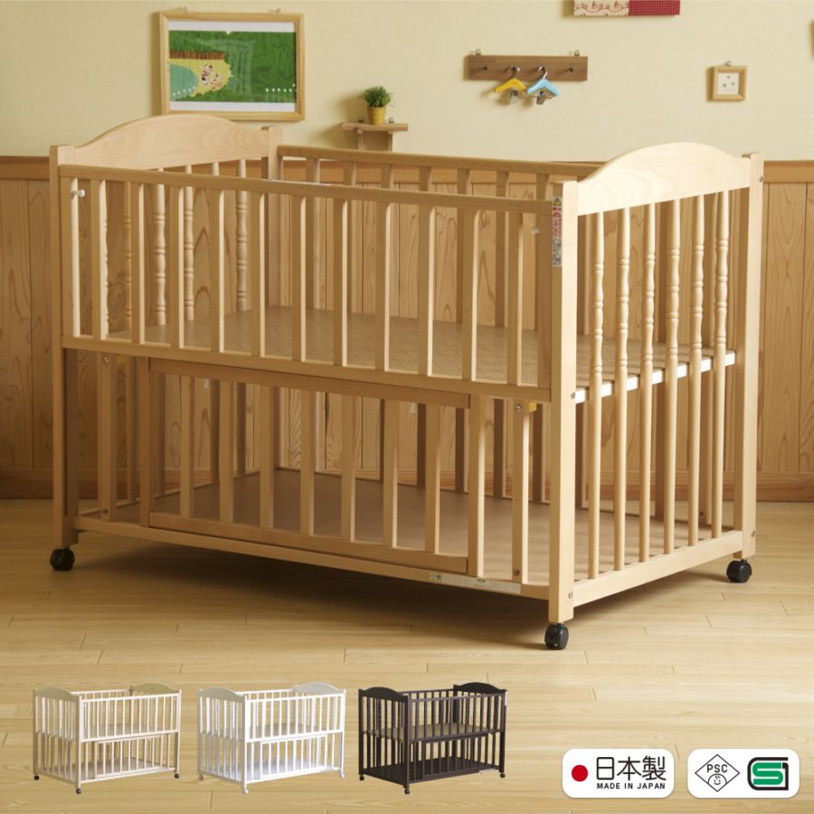 日本製 ベビーベッド「ツースライドベッド【ベビーベッド単品】」 ベビーベット 布団 セット 木製 転落防止 キャスター付 高さ調...
