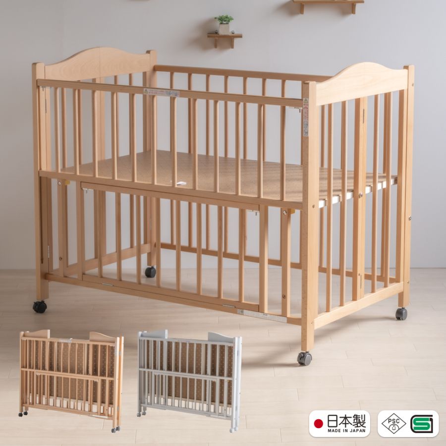 日本製 ベビーベッド「ツースライドベッド ※ B品 ※ 【ベビーベッド単品】」 ベビーベット 布団 セット 木製 転落防止 キ...