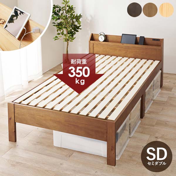 組立簡単 すのこベッド 引出し付 セミダブルベッド フレームのみ 2口コンセント付