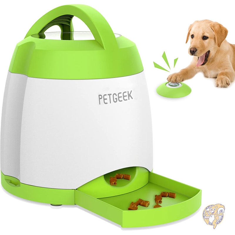 ボタン付き自動犬用おやつディスペンサー デュアル電源とリモコン付き犬用ボタンフィーダー 犬用パズルおもちゃ PETGEEK ペット...