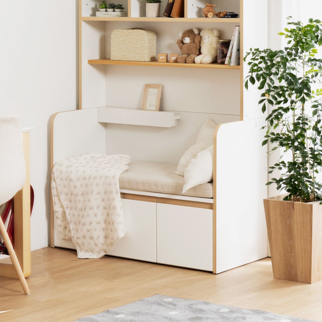 [幅110] チェストベンチ 収納 ベンチ 北欧 クッション 引出し ベンチ収納 コンセント ヌック ホワイト 白 木製