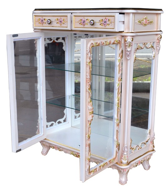 千葉限定 ロココ調 2面 コレクション キャビネット(トップガラスサービス)お持ち帰り価格