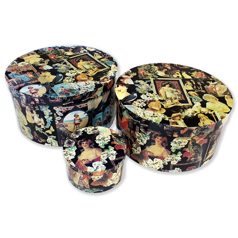 【掘り出し物】(ヴィンテージ品) フランス製 円型ボックス 3点セット【ヴィクトリアン×ブラック】