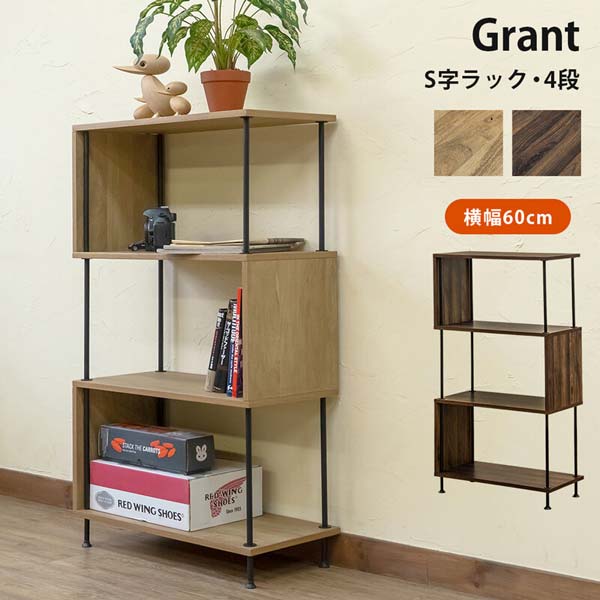 S字ラック 4段 オープンラック 木製 スリム おしゃれ ディスプレイラック 収納 おしゃれ