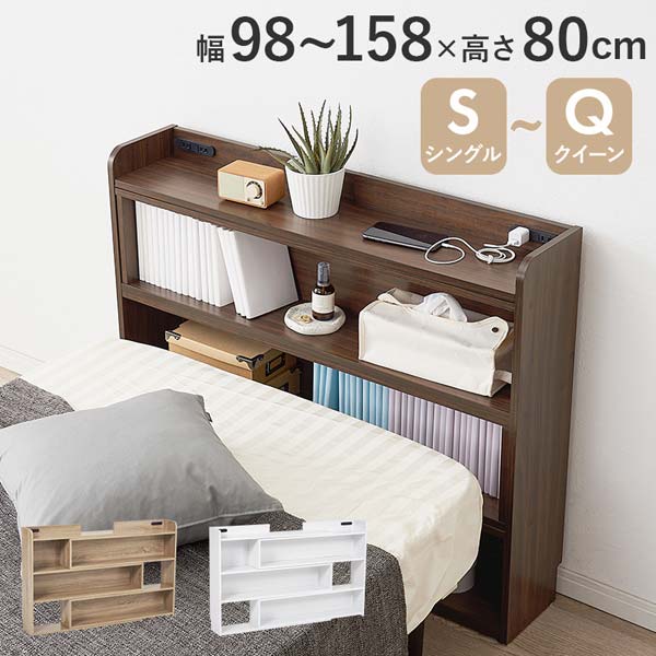 伸縮ヘッドボード 本棚 シェルフラック 棚 オープンラック コンセント付き