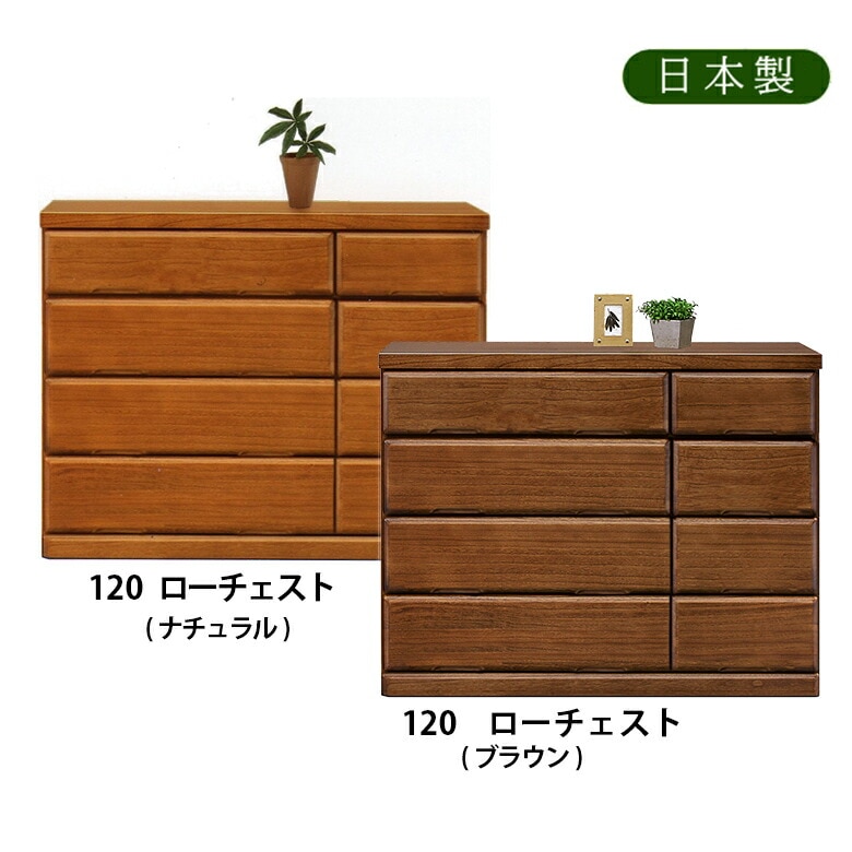 ローチェスト チェスト タンス たんす 幅120cm 2段 ナチュラル ブラウン 自然塗装 日本製