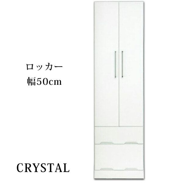 ワードローブ タンス クリスタル 幅50cm 高さ180cm ロッカー 鏡面仕上げ ホワイト 国産 送料無料