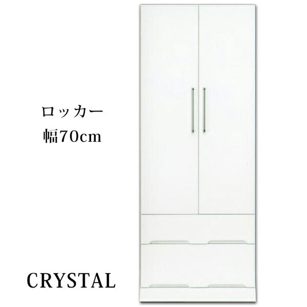 タンス クリスタル 幅70cm 高さ180cm ロッカー 鏡面仕上げ ホワイト 国産 送料無料