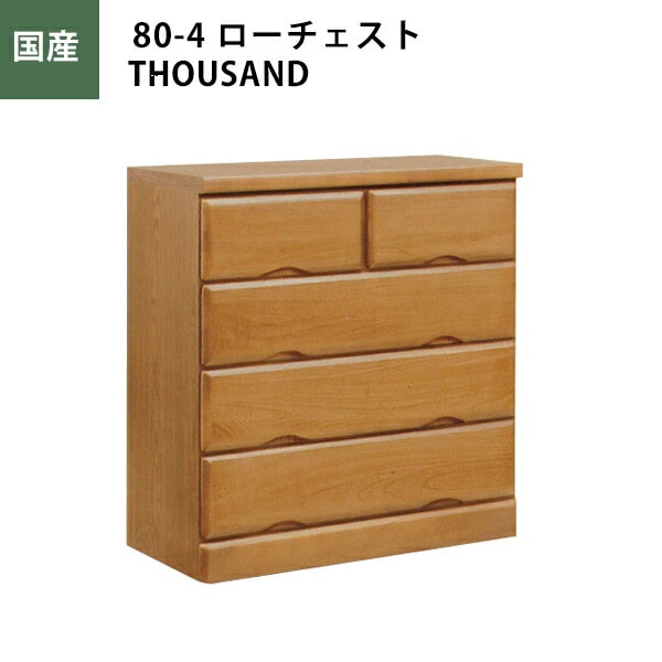 チェスト ローチェスト 幅80cm 引き出し4段 タンス 桐 ライトブラウン 収納家具 日本製 完成品 大川家具