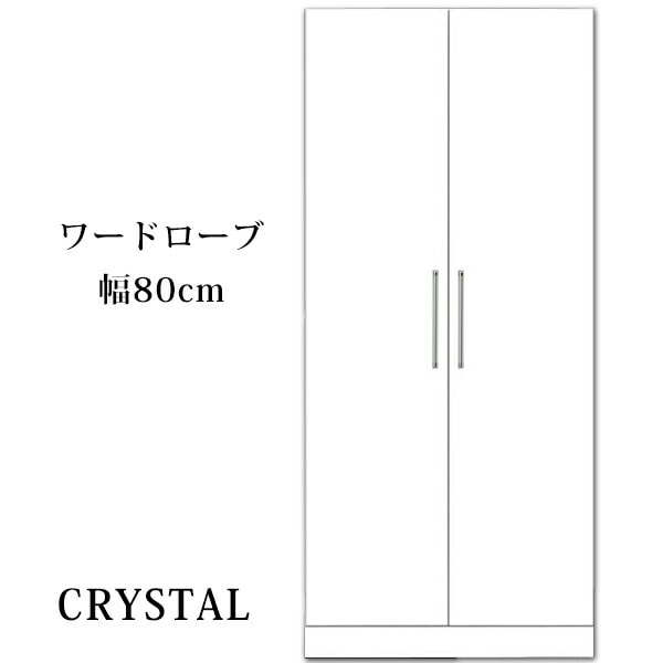 ワードローブ 服吊 クリスタル 幅80cm 高さ180cm 鏡面仕上 ホワイト 国産 送料無料