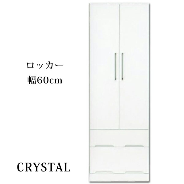 ワードローブ タンス クリスタル 幅60cm 高さ180cm ロッカー 鏡面仕上げ ホワイト 国産 送料無料