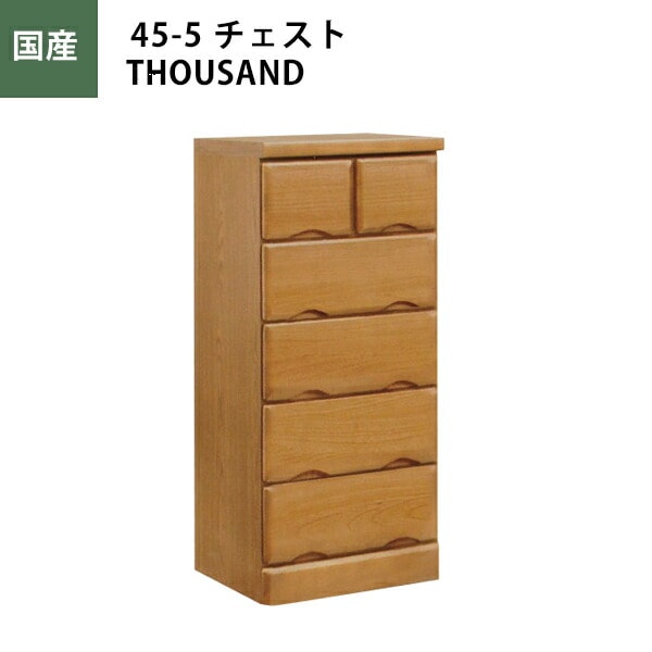 チェスト ローチェスト 幅45cm 引き出し5段 スリム タンス 桐 ライトブラウン 収納家具 日本製 完成品 大川家具