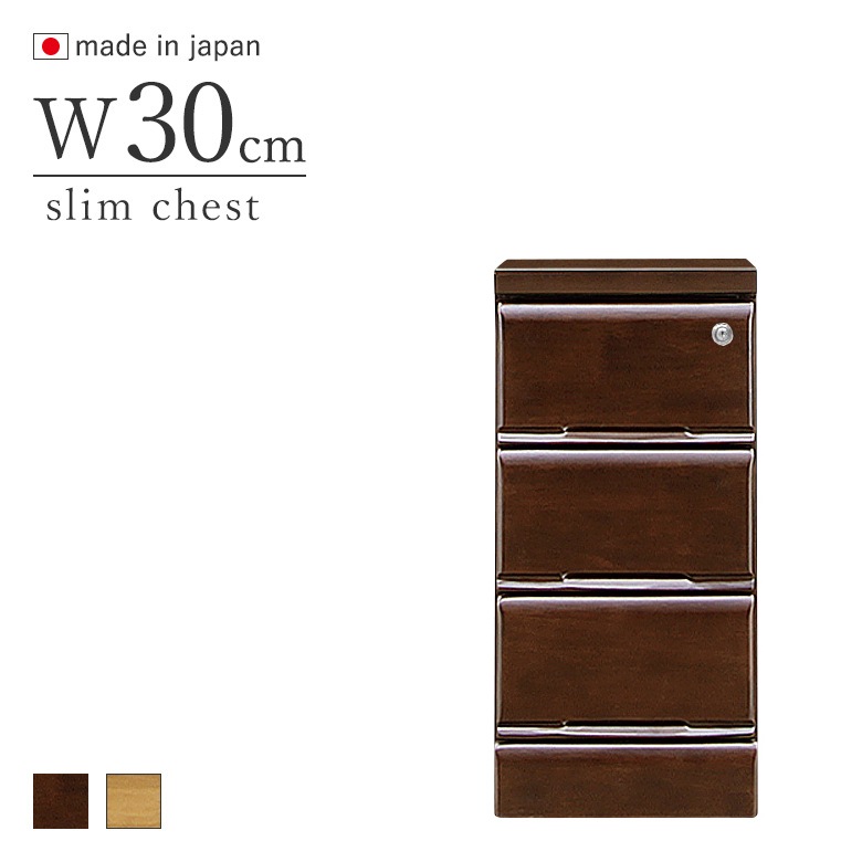 鍵付きチェスト 30-3段 引出し3段 スリムチェスト ブラウン・ナチュラル 日本製 完成品