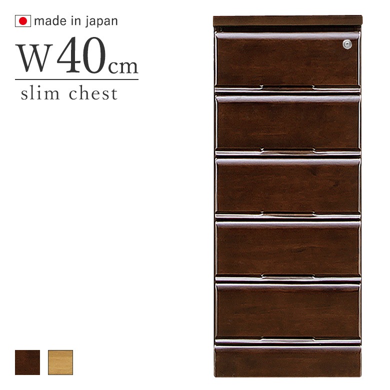鍵付きチェスト 40-5段 引出し5段 スリムチェスト ブラウン・ナチュラル 日本製 完成品