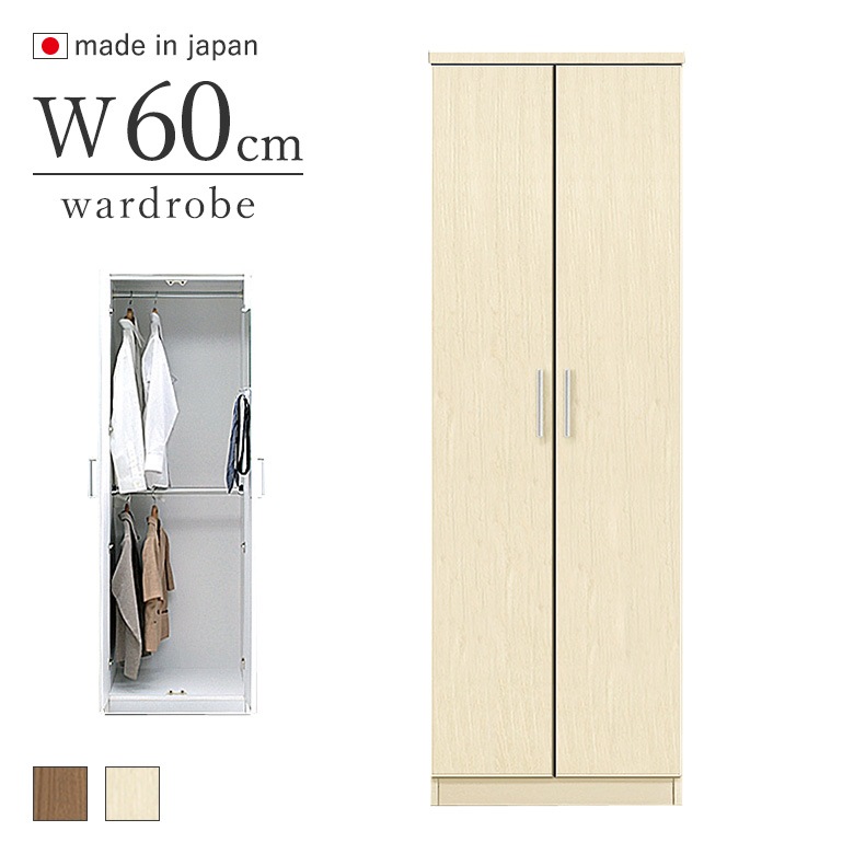 ワードローブ 幅60cm 服吊り ホワイト・ブラウン 日本製 完成品