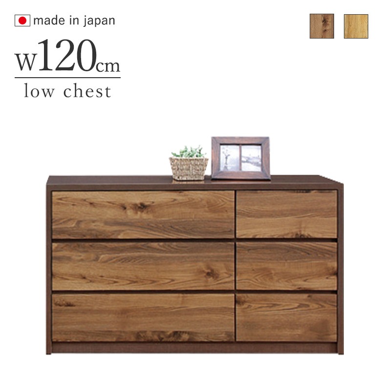 ローチェスト 幅120cm 引出し3段 長引出しフルオープンレール付き ブラウン・ナチュラル 日本製 完成品