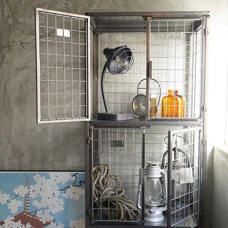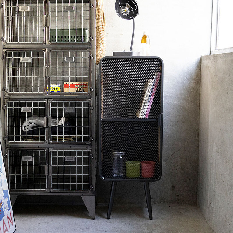ミリタリーテイスト メッシュキャビネット アンティークシルバー 全国送料無料(沖縄・離島除く) 秘密基地系ファニチャー FML