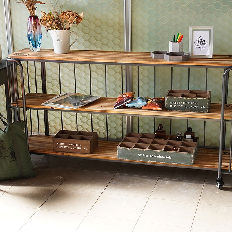 ミリタリーテイスト ウッド&アイアン メッシュキャビネットL (3段タイプ) 全国送料無料(沖縄・離島除く) 秘密基地系ファニチ...