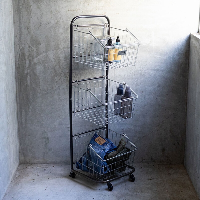 ミリタリーテイスト 3段ワイヤーラック キャスター台付き 全国送料無料(沖縄・離島除く) 秘密基地系ファニチャー FML