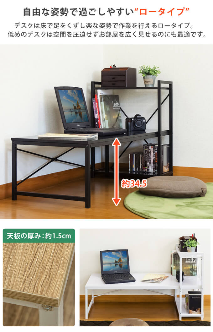 ラック付きデスク ロータイプ 120 ナチュラル CG-09-NA