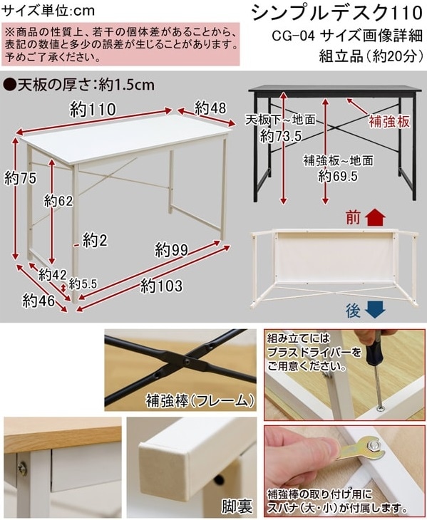 シンプルデスク 110 CG-04-WH ホワイト