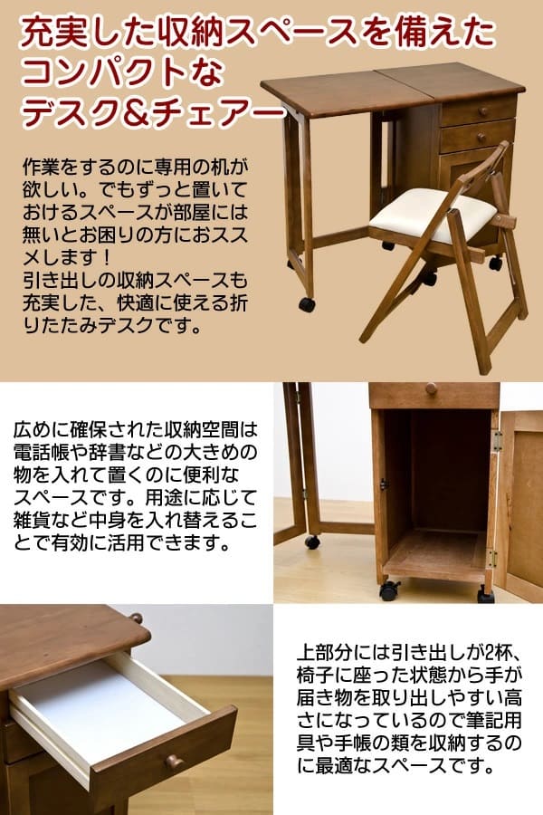 木製折りたたみデスク&チェア IS-03-BR ブラウン