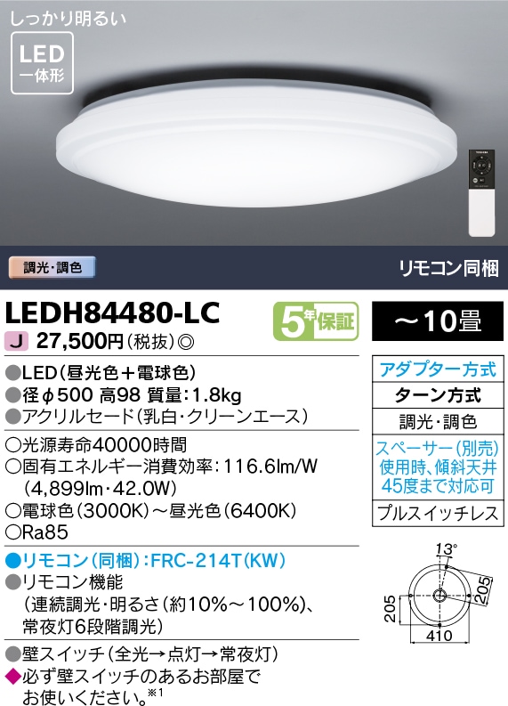 東芝 LEDH8401A01-LC LEDシーリングライト(~10畳用/調光・調色)リモコン付 簡易取付形