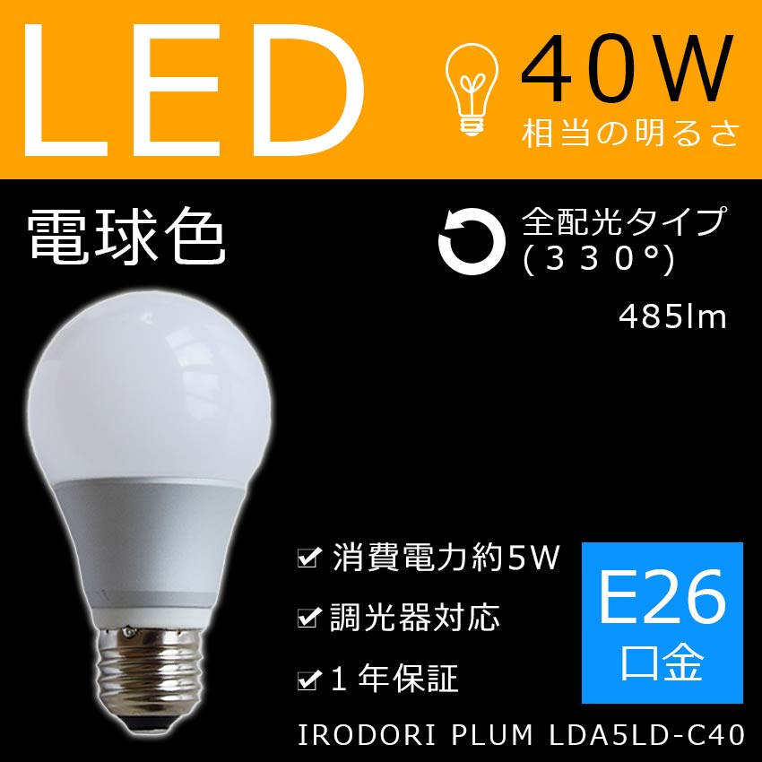LED電球 E26型 40W相当/Irodori Plum LDA5LD-C40 単品