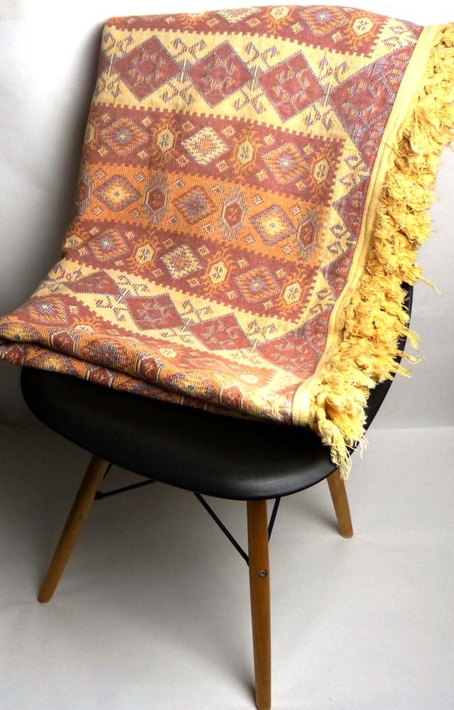 ヴィンテージ ネイティブ柄 コットン/ カーペット / ラグマット /ソファーカバー【中古】