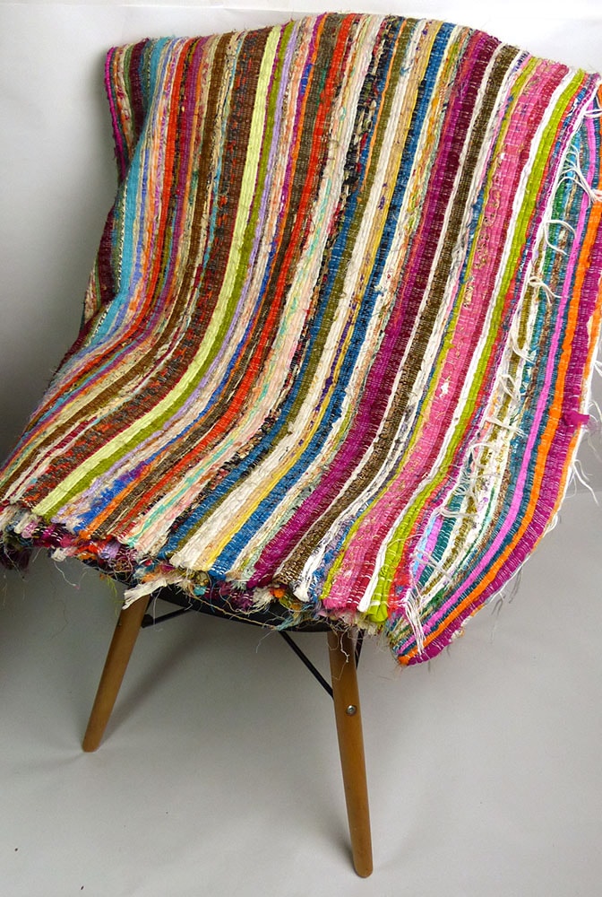 インド 裂き織り / カラフルなチャンディラグ / チャンディマット(約135×220cm)【中古】