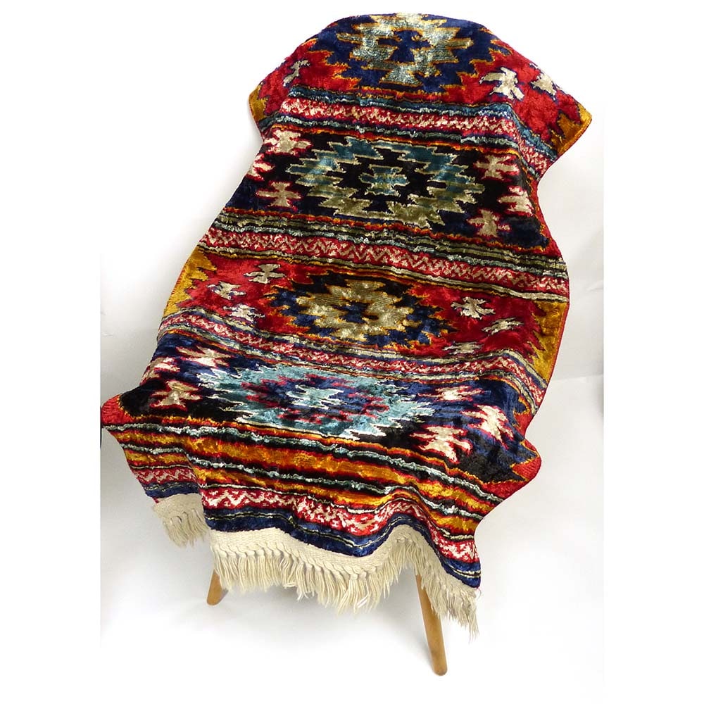 106×61cm ベルベット メキシカンラグマット / カーペット / 絨毯【中古】