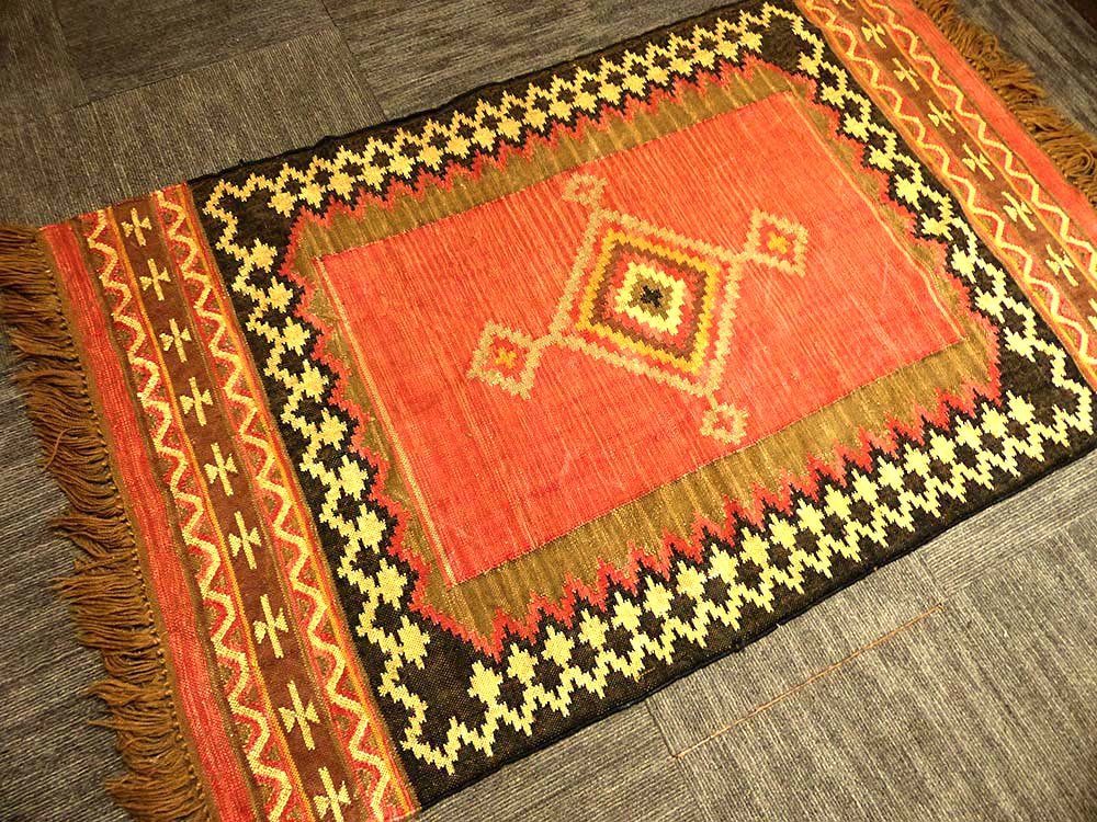 インド製 ジュートラグ/ キリムラグ マット【中古】