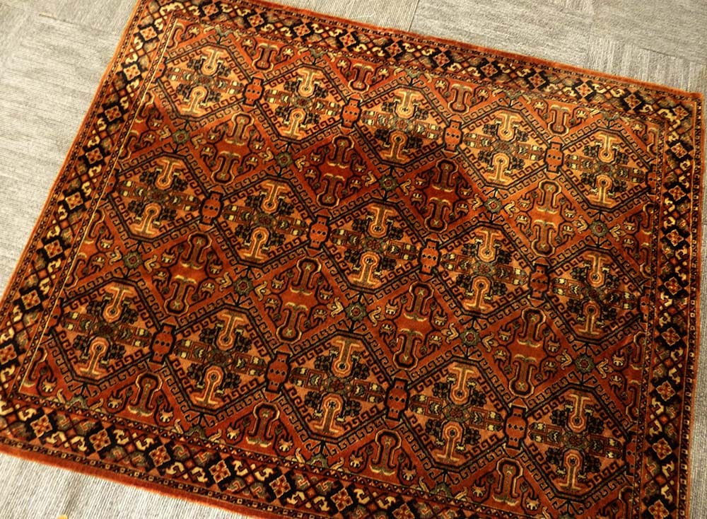 パキスタン ジャルダー (Jaldar)柄 手織り ミニラグ/ ミニミニ絨毯 【中古】