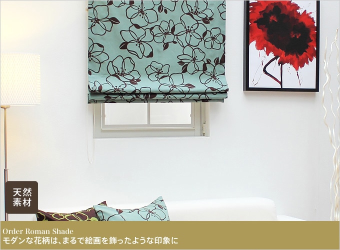【幕体のみ】モダンな北欧調花柄 綿(コットン)100% ローマンシェード(ミントグリーン)【買い替え用】